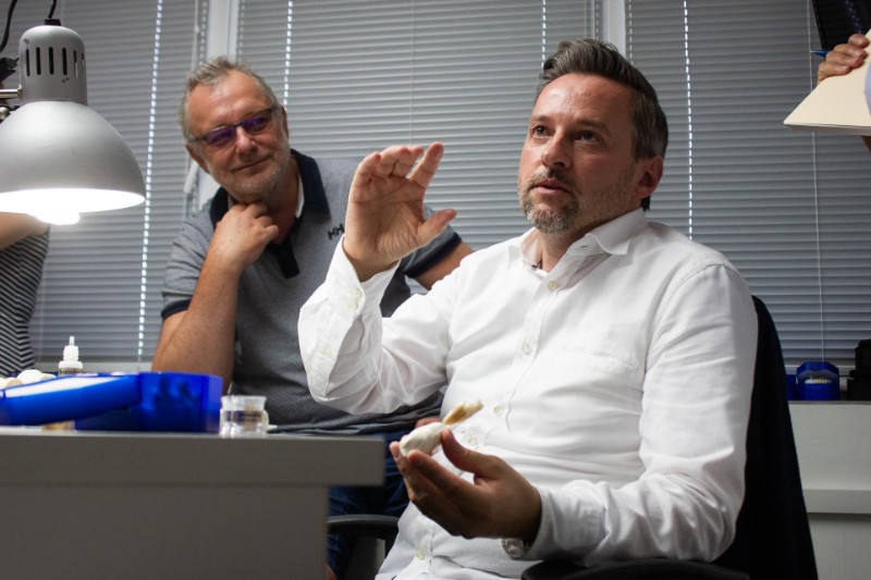 A fogpótlások digitális terveit a gipszmodellek lézeres szkennelését követően, 3D-s tervezőprogrammal készítjük el. A tervek alapján a hidakat, fémlemezeket, implantátum felépítményeket erre specializálódott frézcentrumokban nagy pontosságú CNC marógéppel vagy lézerszinterrel gyártják le.
